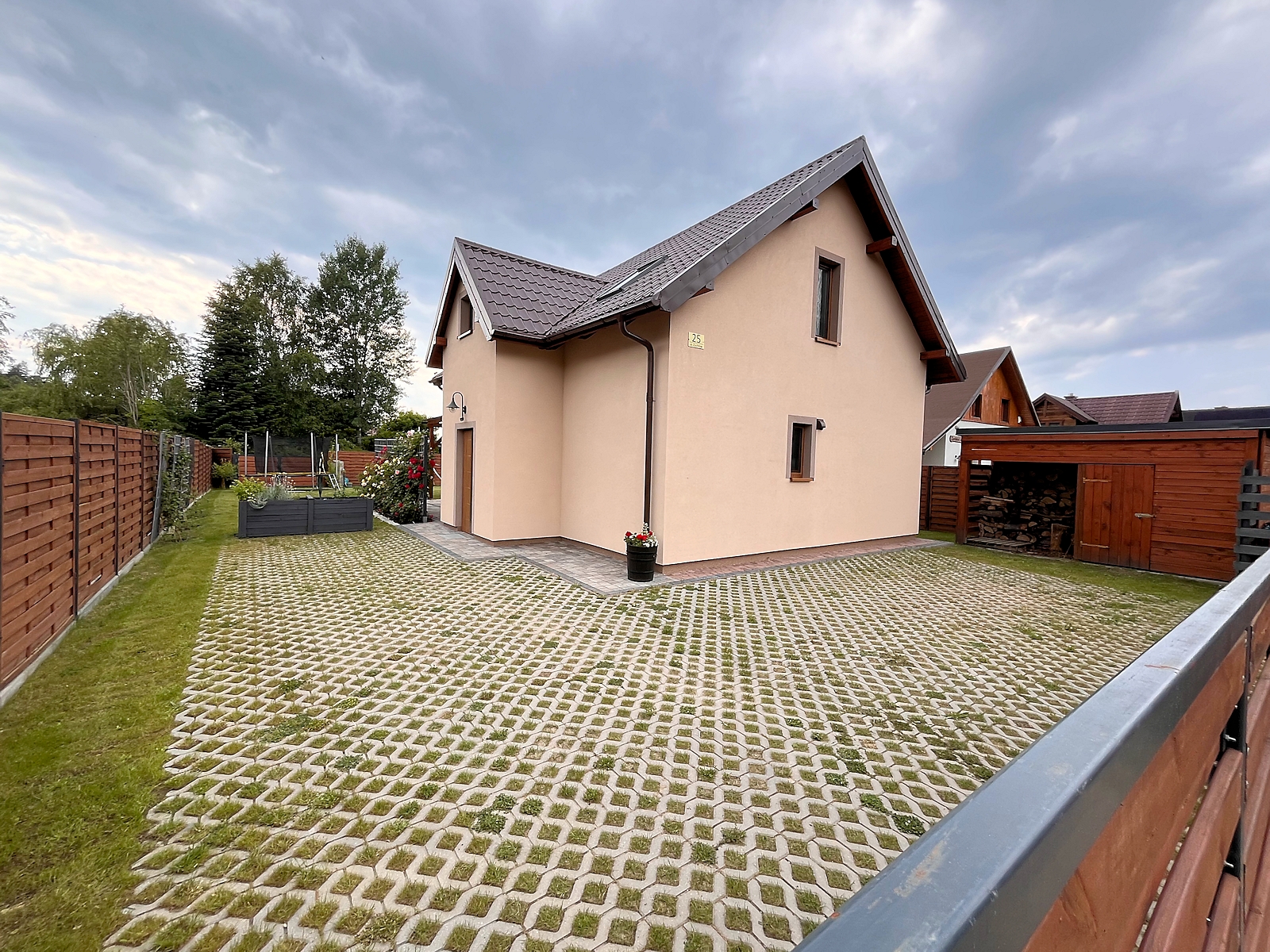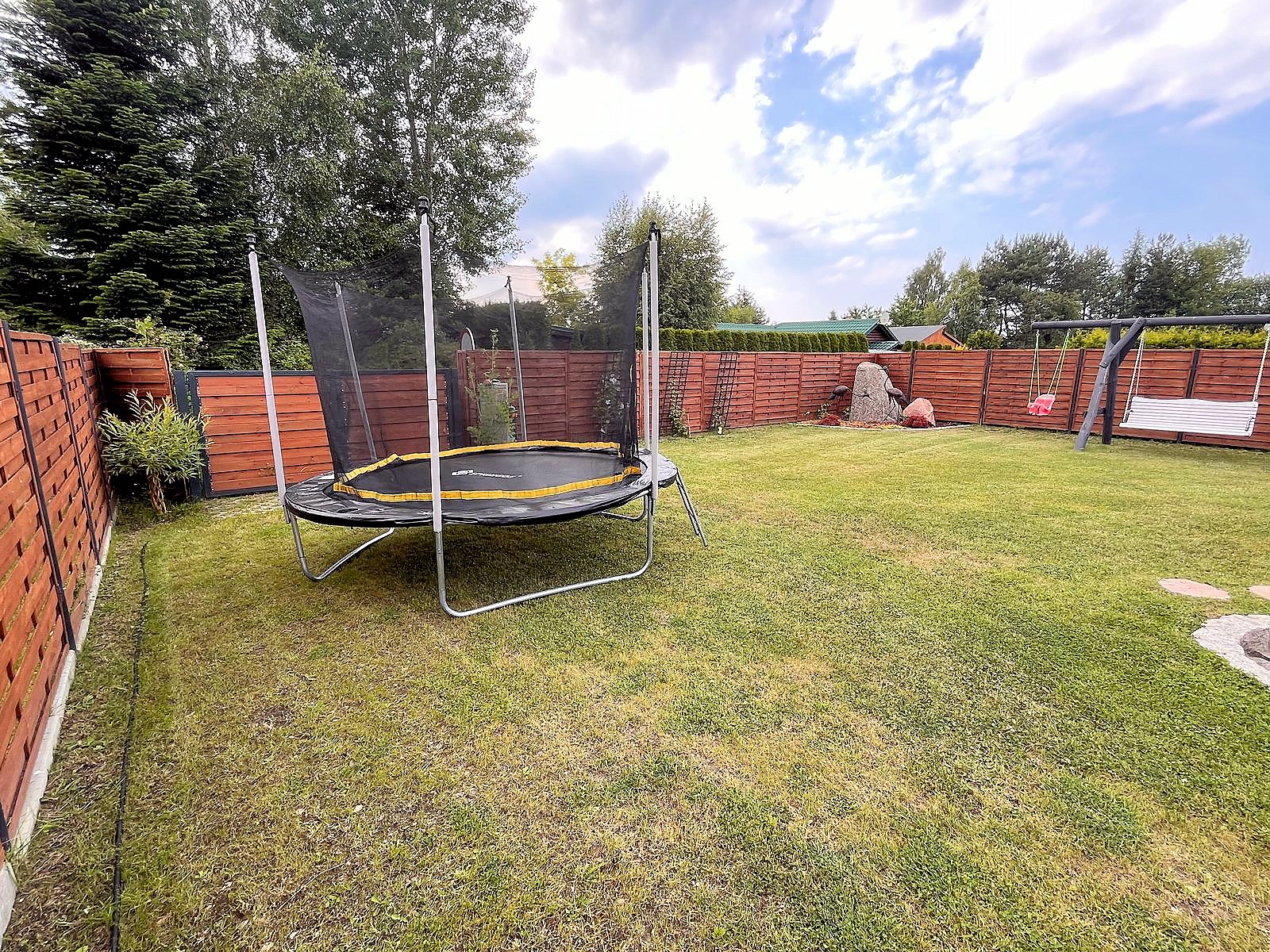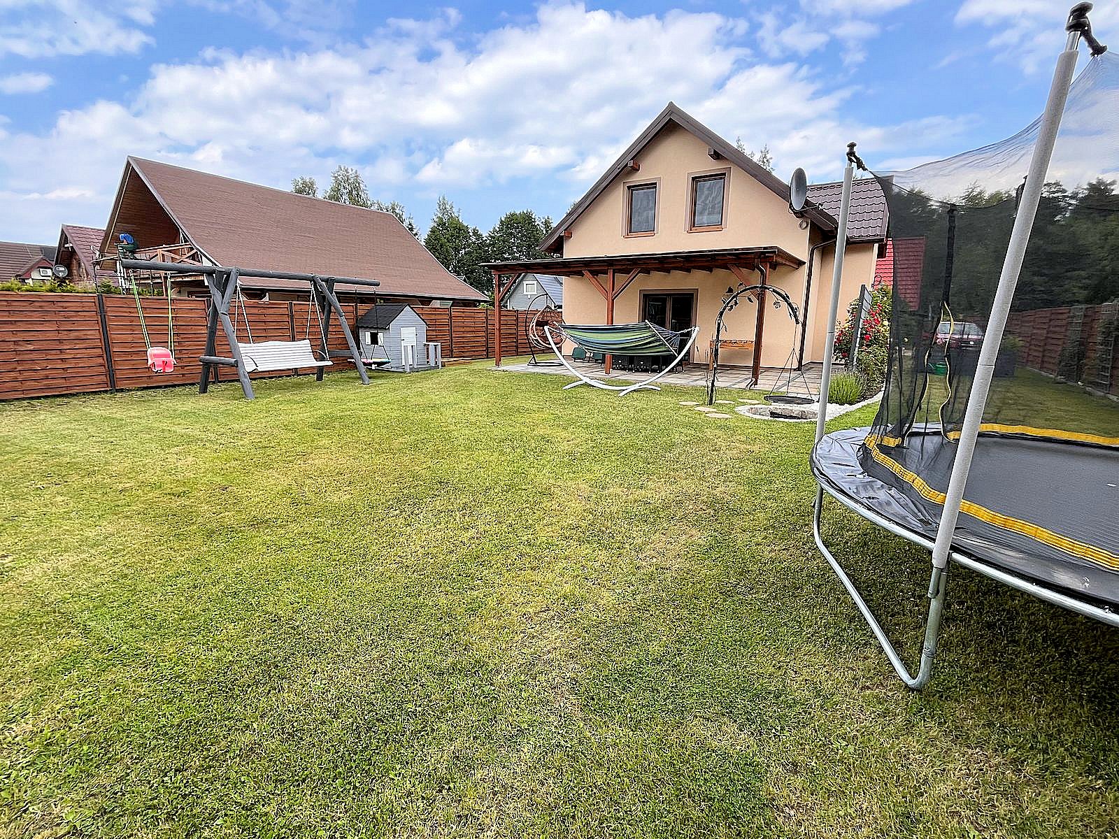 Domek całoroczny, znajduje się na samodzielnej posesji na małym osiedlu. Teren jest ogrodzony, wewnątrz ogród z miejscem do wypoczynku oraz podjazd na 3 samochody.